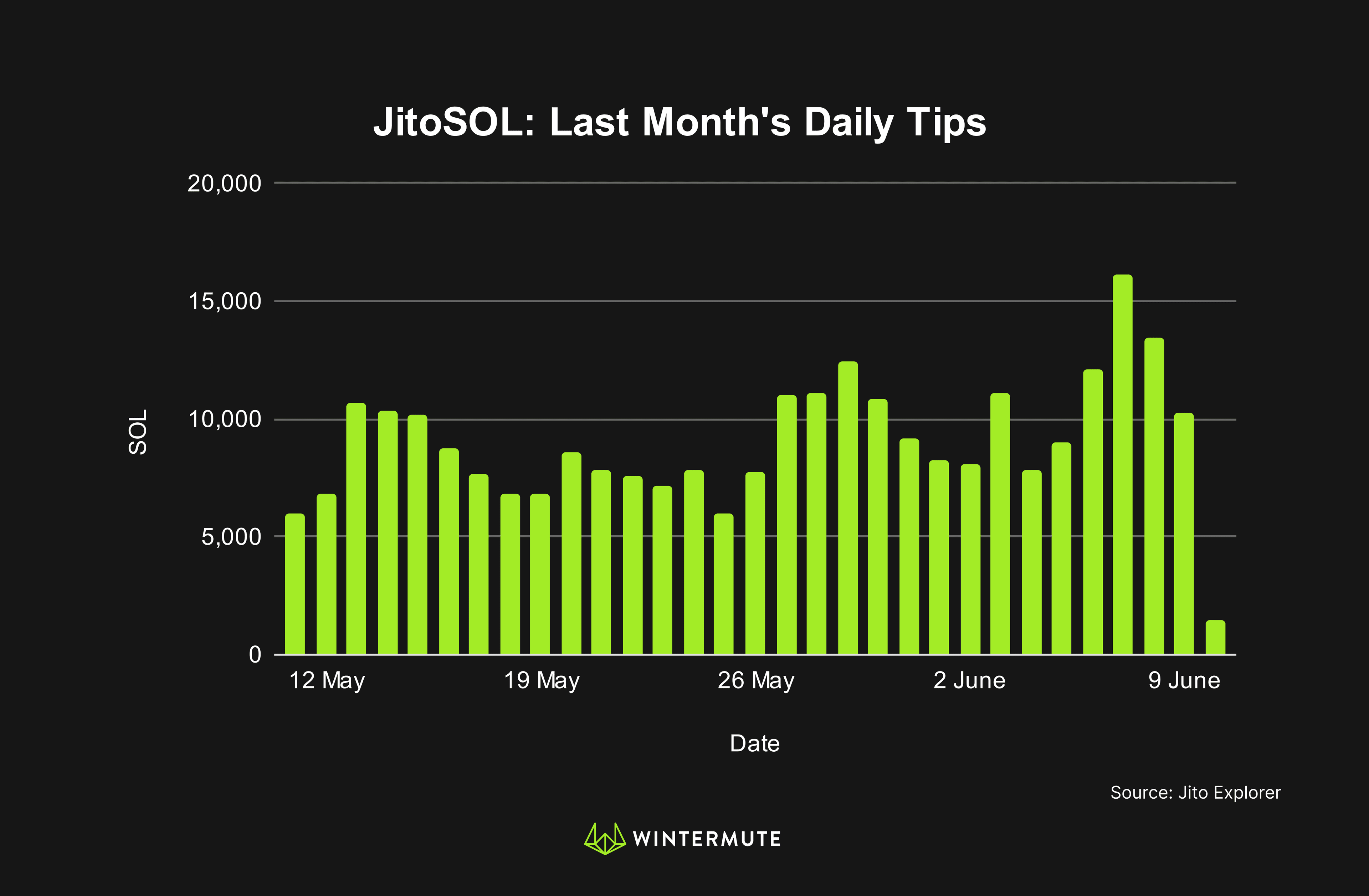 Bar graph of JitoSOL: Last Month's Daily Tips