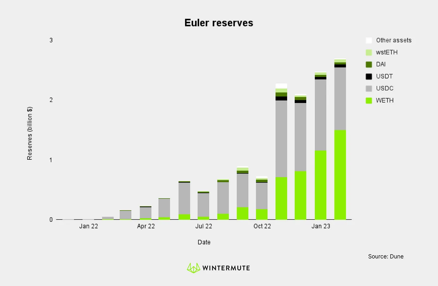 • Euler allowed the creation of lending pools permissionlessly, using Uniswap v3 as an oracle for long-tail assets. On top of that, they had features such as native leverage lending and an innovative liquidation engine based on Dutch auctions.