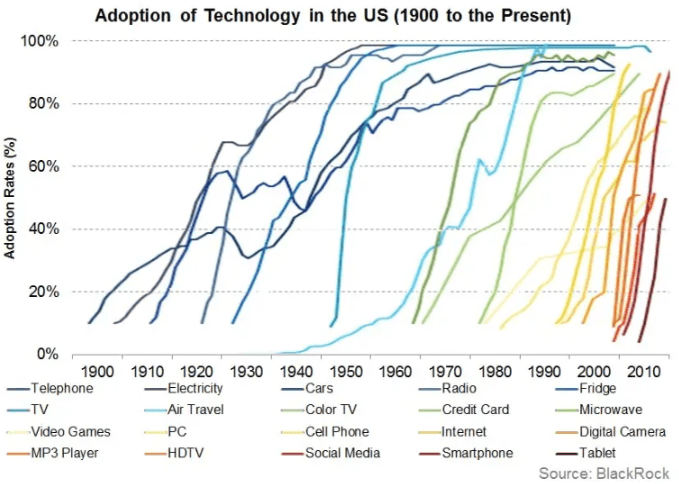 With instantaneous global communication, near-zero marginal cost of software replication, and interoperable digital infrastructure, blockchain’s march to ubiquity is unlikely to take centuries, it’s more likely to be a single-generation sprint.